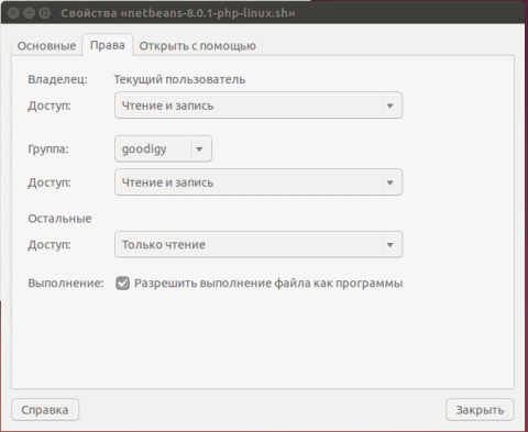 Для того чтобы установить NetBeans нужно скачать его, обязательно с официального сайта. Переходим по этой ссылке. Нажимаем кнопку загрузить под нужной редакцией, скачиваем. Переходим в Наутилусе в папку, в которую скачали файл, нажимаем правой кнопкой мыши, переходим в свойства,а там переходим на вкладку Права