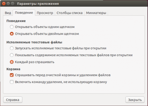 Далее, переходим в настройки Наутилуса (Правка - Параметры), и ставим галочку на пункте Исполняемые текстовые файлы, Каждый раз спрашивать, для того, чтобы можно было запускать файлы мышкой.