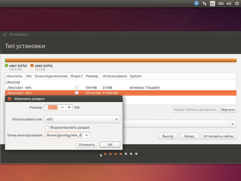 Поэтому если вы ставите Ubuntu рядом с Windows и планируете часто ей пользоваться, то можно оставить диск d: большим и всю информацию хранить на нем.