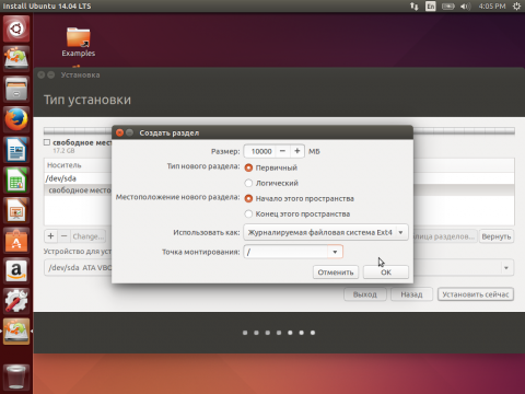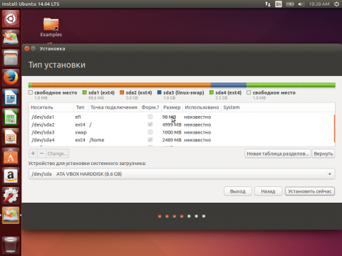 Разметка диска для Ubuntu